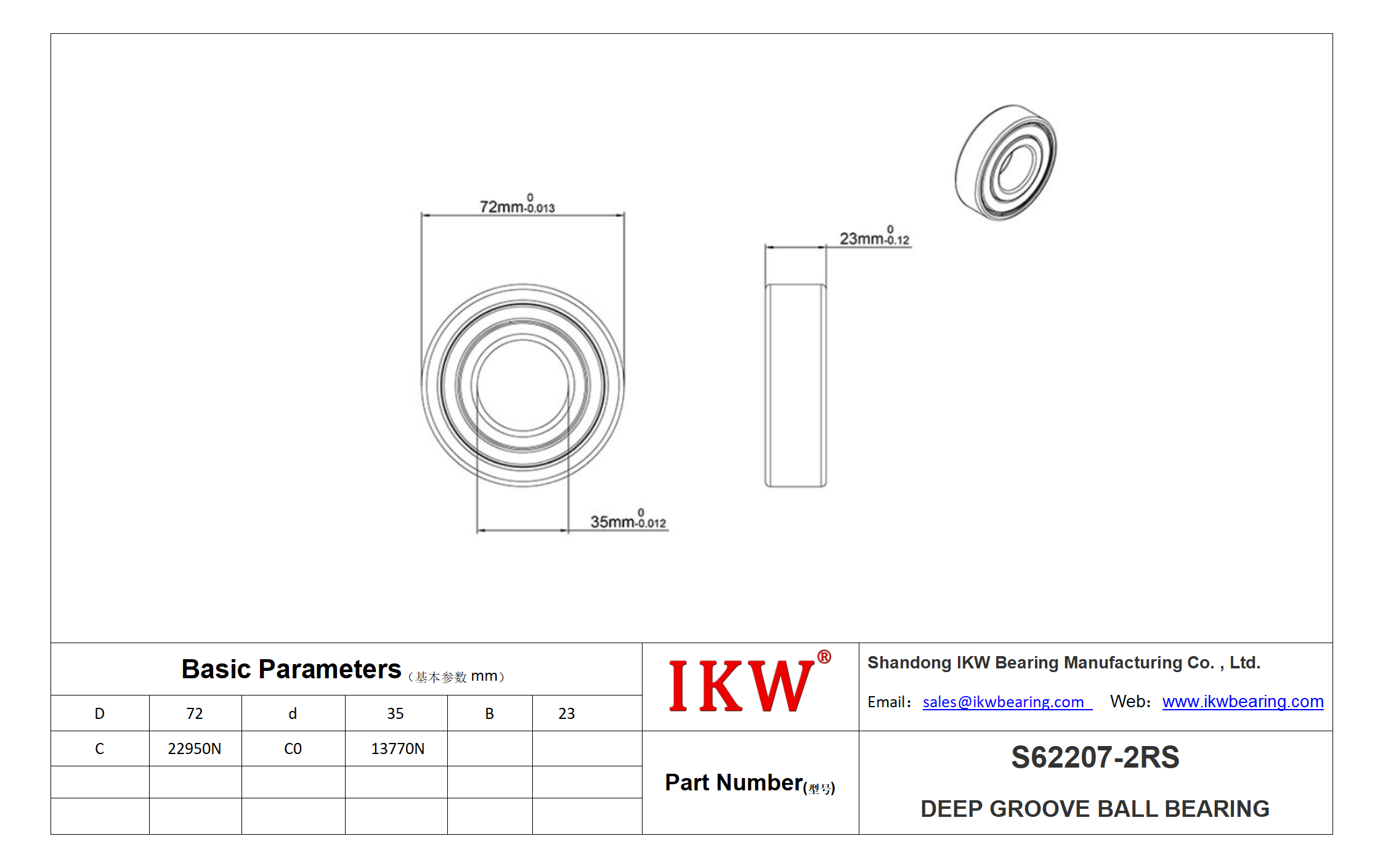 | Product Number | S62207-2RS |